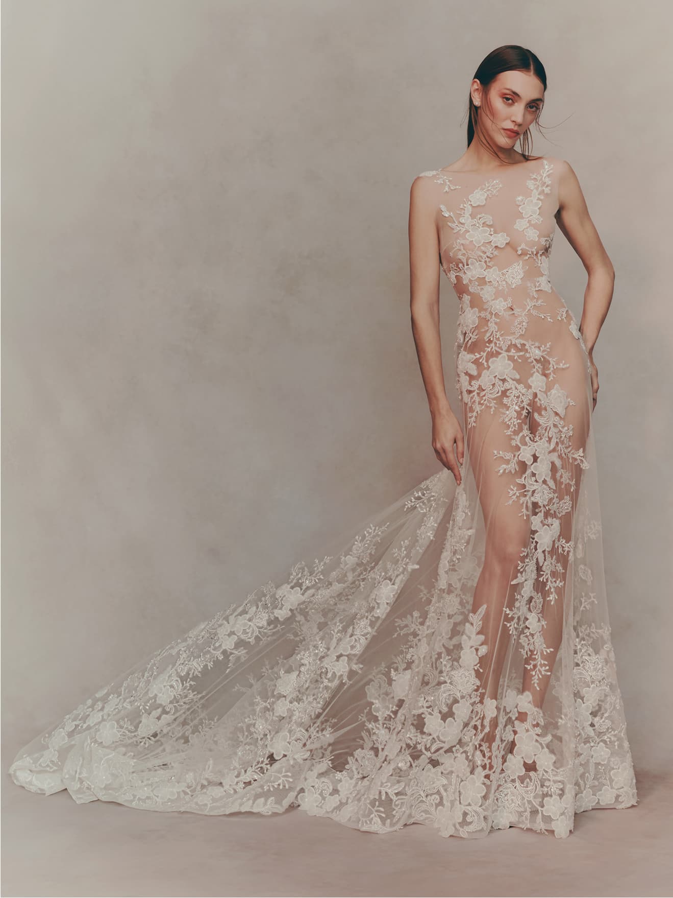 Transparências delicadas, bordados feitos à mão e rendas francesas requintadas elevam cada vestido, fazendo do Atelier 2026 uma verdadeira sinfonia de artesanato para a noiva contemporânea.