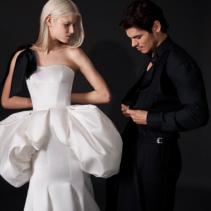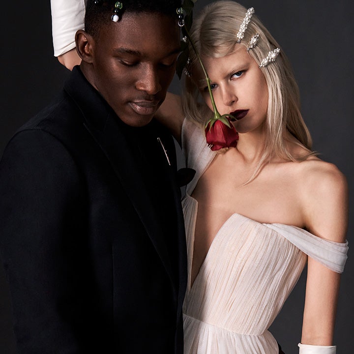 For couples looking to make a dramatic statement, this sharp and daring color duo delivers a bridal statement, and the main ingredients for a glamorous evening event. Imagine rich red roses paired with sleek black accents to create a luxurious, edgy vibe. The theme works beautifully in grand indoor venues inside castles or historical hotels, where dim lighting and candlelight add to the drama. A bridal planning checklist will help you ensure every detail of your bold theme is executed flawlessly, from red centerpieces to black linens and dramatic lighting. Discover our Vera Wang Bride x Pronovias Collection to break all the rules.