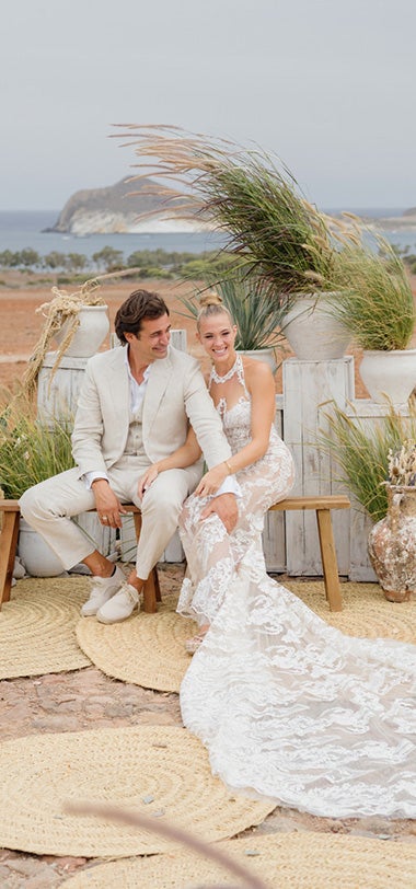 Such an effortless-chic aura is perfect for couples who love earthy, eclectic vibes. Imagine a relaxed setting filled with macramé, pampas grass, and mismatched vintage decor. A boho lace wedding dress guides this theme beautifully, adding an effortless and ethereal touch to your bridal vision. Whether you’re getting married in a forest, field, or beach, the boho style is all about embracing individuality. This theme is laid-back but stylish, allowing you to add creative elements like dreamcatchers or vintage rugs to personalize your celebration.