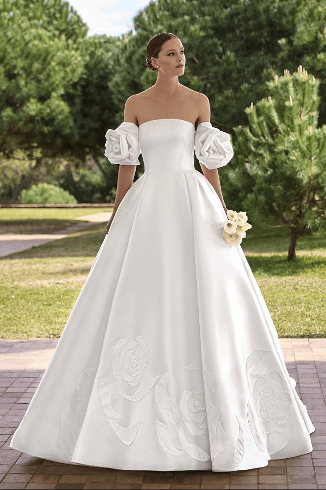 Few materials rival the sophistication of satin and silk. With their natural sheen and smooth finish, these bridal gown fabrics create a polished and timeless look.