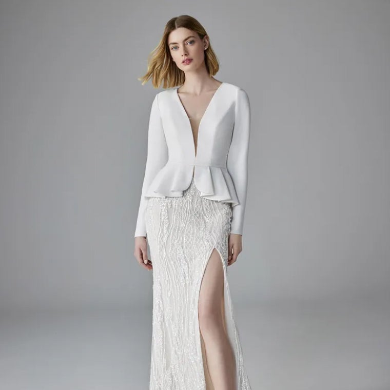El traje de pantalón es una opción cada vez más popular para bodas civiles. Es una alternativa moderna y sofisticada al vestido tradicional a la hora de casarse en el juzgado, ya que le permite a muchas novias romper con los esquemas sin perder elegancia. Por ejemplo, un pantalón palazzo en un tejido fluido o un pantalón de talle alto combinado con un top estructurado pueden crear un look increíblemente chic.