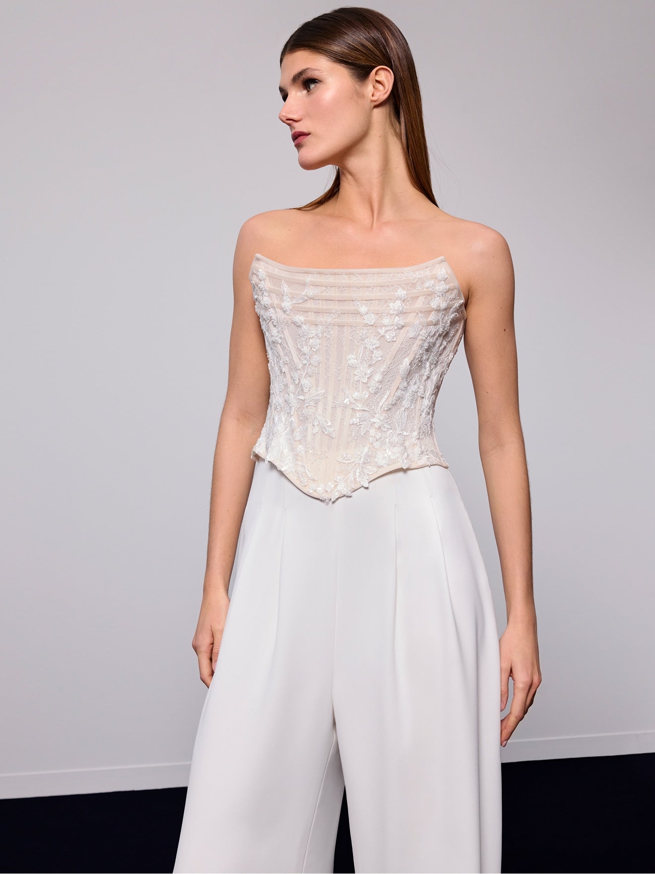 Les silhouettes séparées, comme celles de notre collection Pronovias Separates, séduisent particulièrement. Un top délicat orné de détails couture associé à une jupe légère ou un pantalon élégant : l’alliance parfaite entre modernité et souplesse.