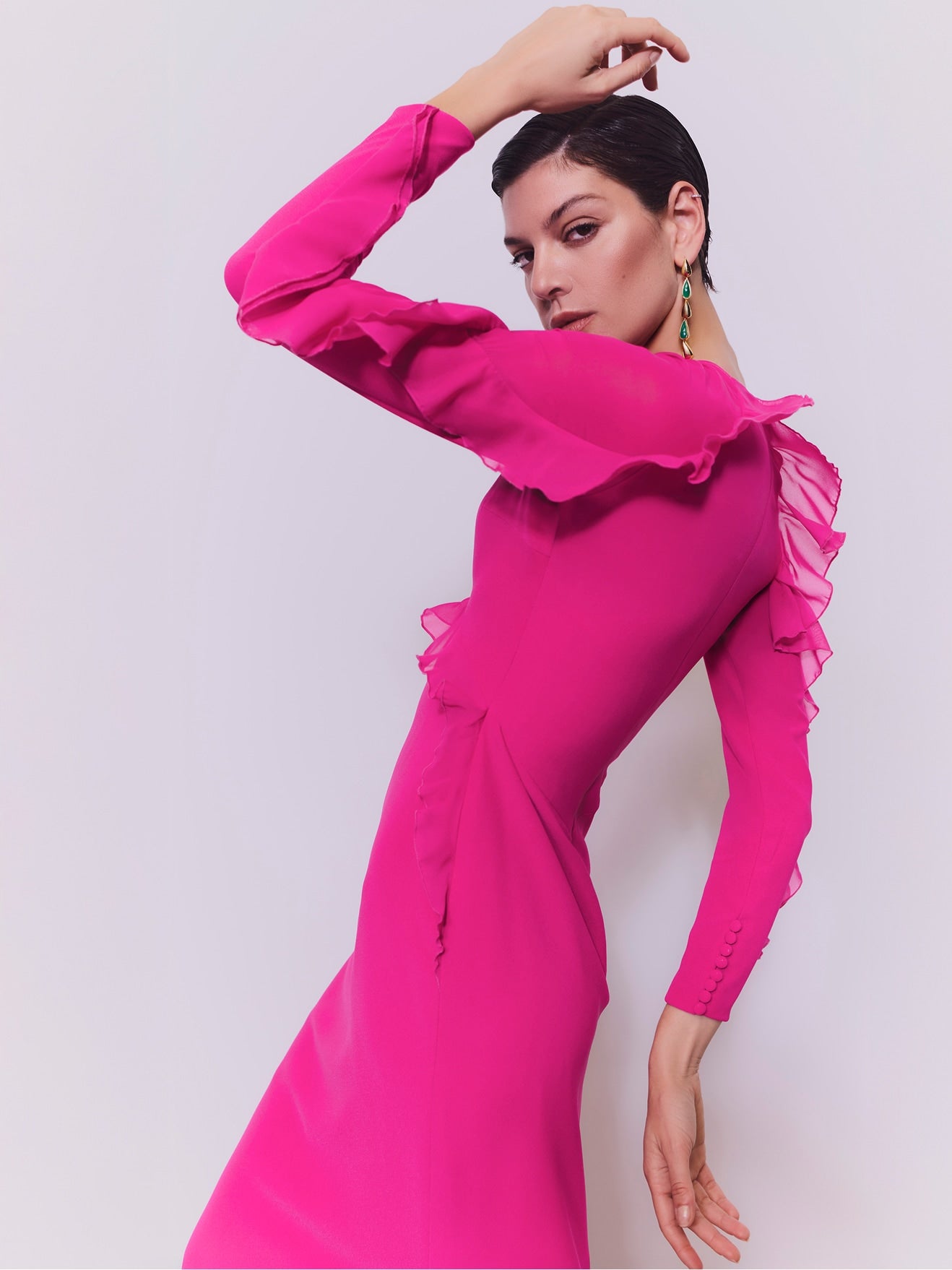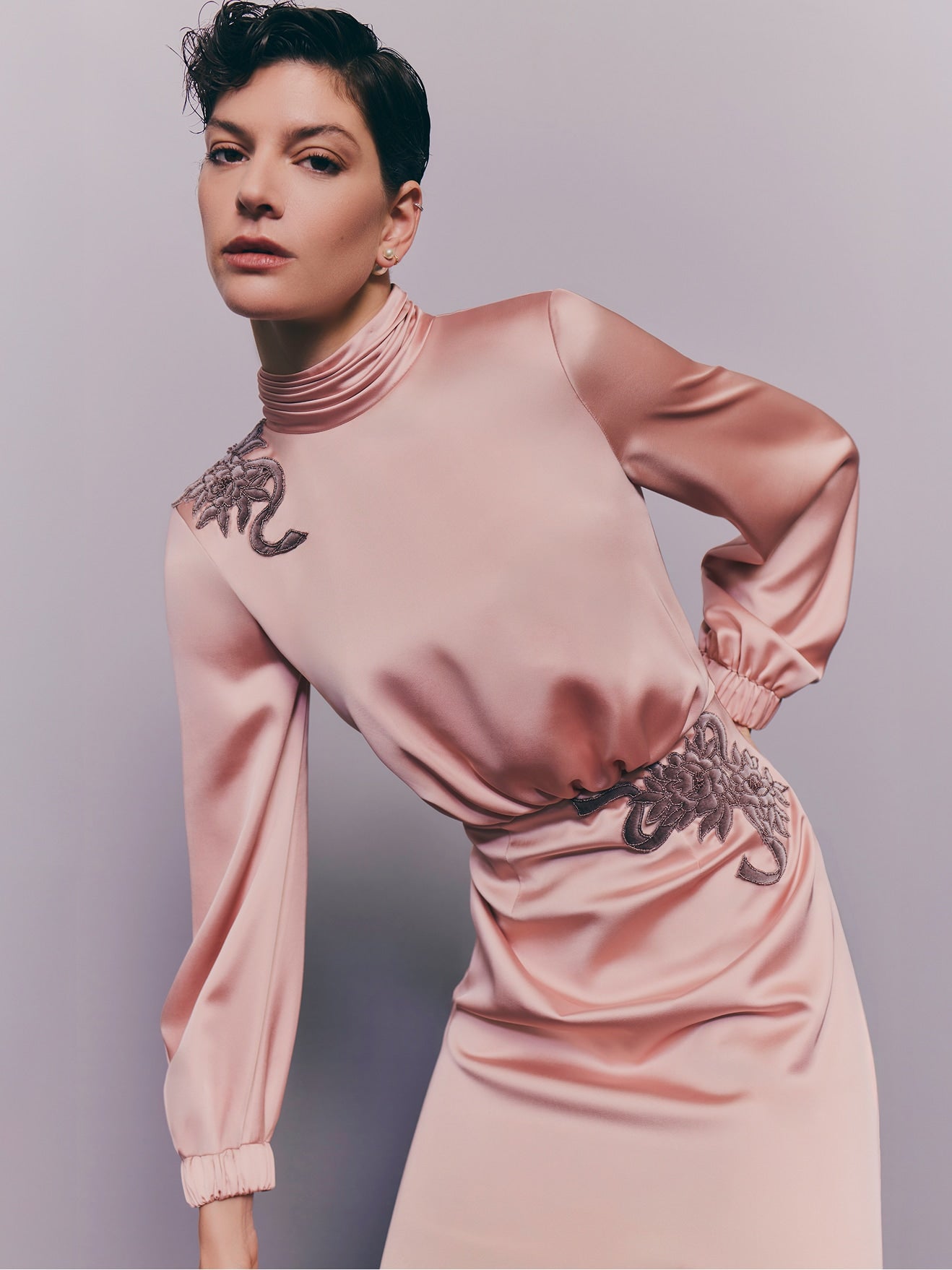 Per le cerimonie diurne, meglio scegliere tinte morbide e tessuti leggeri ma strutturati. Perfetto un abito midi in crepe o un abito da cerimonia a sirena nei colori del malva, verde salvia o ottanio chiaro, abbinati a un blazer tortora o cammello.